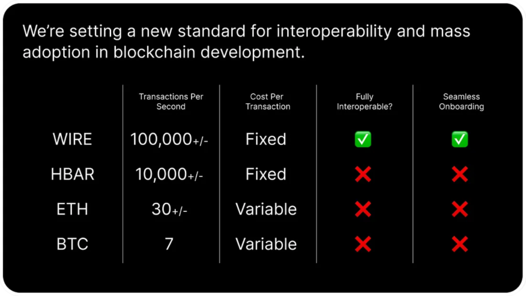 Wire Network is a groundbreaking blockchain technology which leverages an Appointed Proof-of-Stake (APoS) consensus mechanism and tiered node structure to deliver robust and efficient infrastructure for decentralized applications. The platform leverages Universal Polymorphic Address Protocol (UPAP) along with Wire Name Service (WNS) to enable seamless cross-chain transactions and enable universal interoperability across modern blockchains. With a primary focus of enhancing user onboarding, Wire Network also provides a novel Crypto Single Sign-On (SSO) and a decentralized password reset system, making modern blockchains more accessible and user-friendly for non-technical users.
